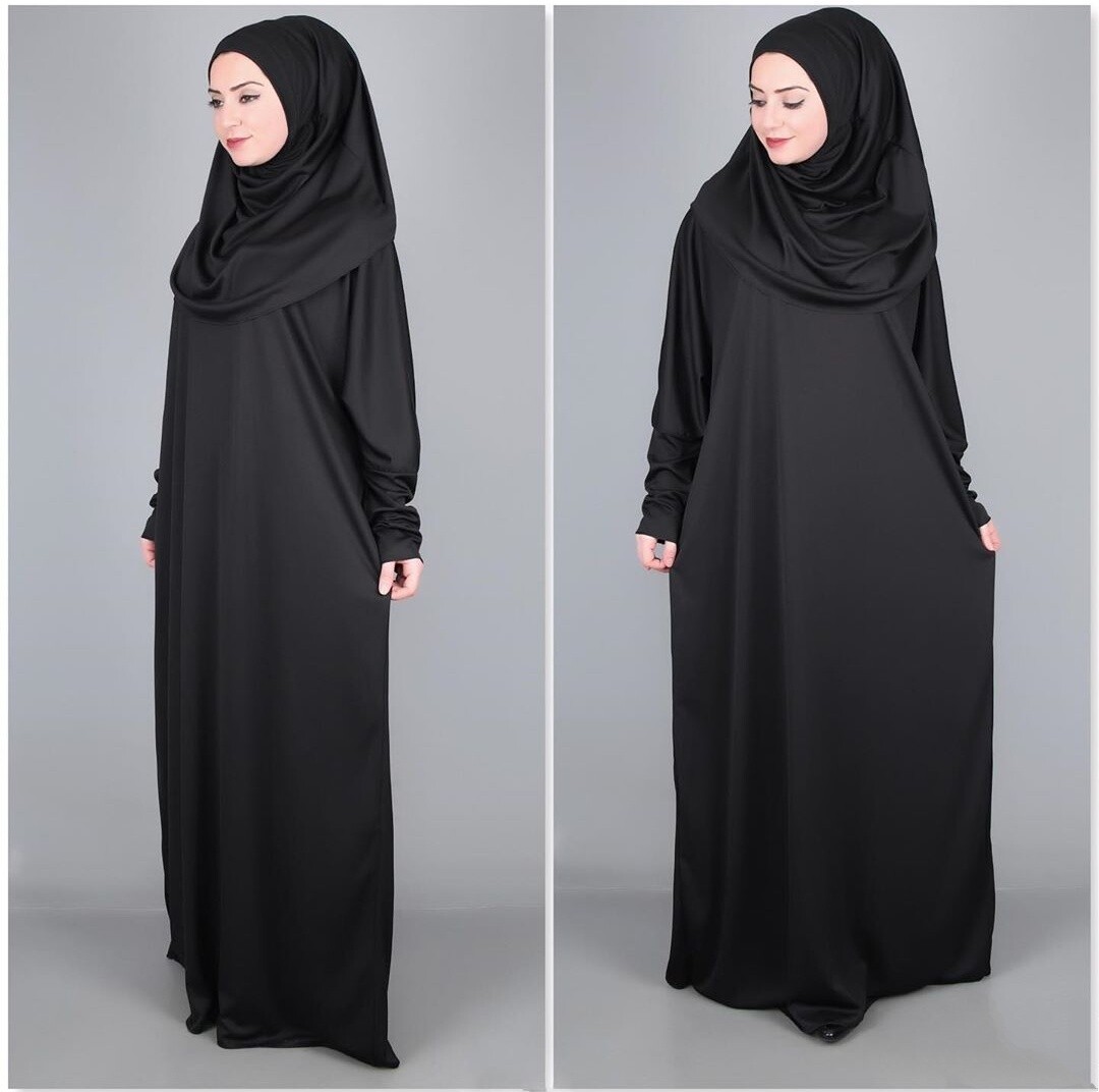 Damen Gebetskleid Schwarz 48-52 Abaya Muslim Langer Hijab Tesettür Namaz Elbisesi