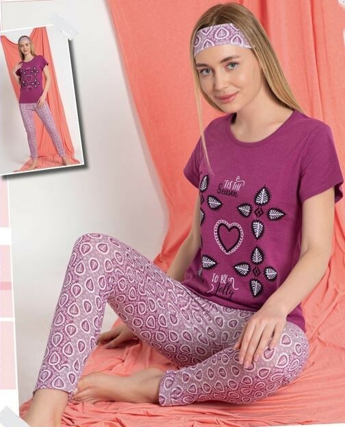 Schreibe die erste Rezension für „Damen Pyjama Schlafanzug Kurz Lila L 3-Teiler Set mit Augenband S-82“