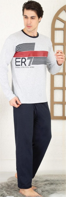 Herren Pyjama Schlafanzug Baumwolle Lang 2-Teiler Set Grau M R-89