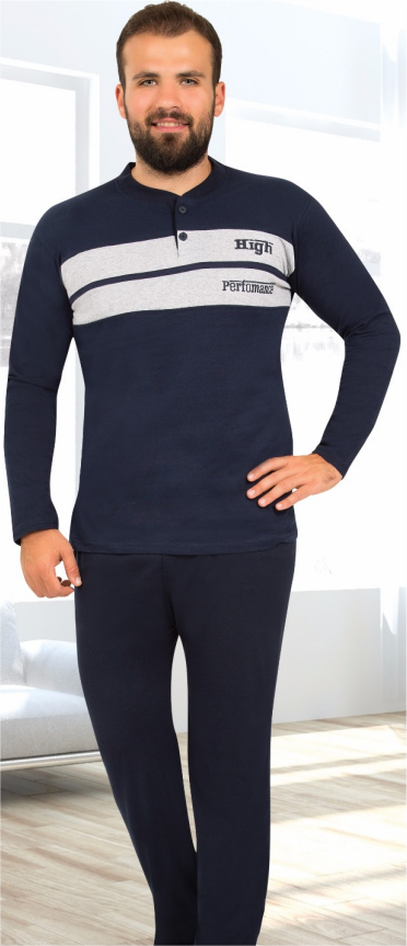 Schreibe die erste Rezension für „Herren Pyjama Schlafanzug Baumwolle Lang Marineblau L 2-Teiler Set R-89“