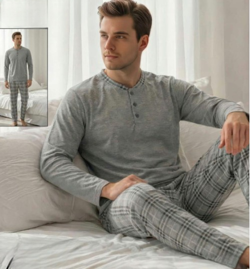 Schreibe die erste Rezension für „Herren Pyjama Schlafanzug Hellgrau XL Baumwolle Lang M-75“